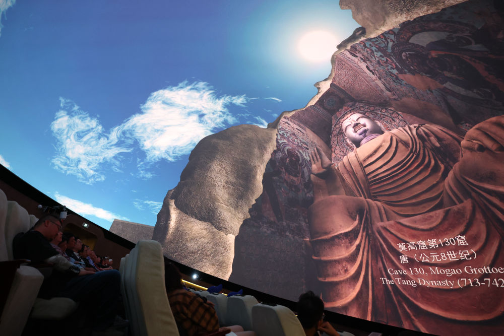 2024年9月4日,游客在敦煌莫高窟數(shù)字展示中心觀看球幕電影《夢(mèng)幻佛宮》。