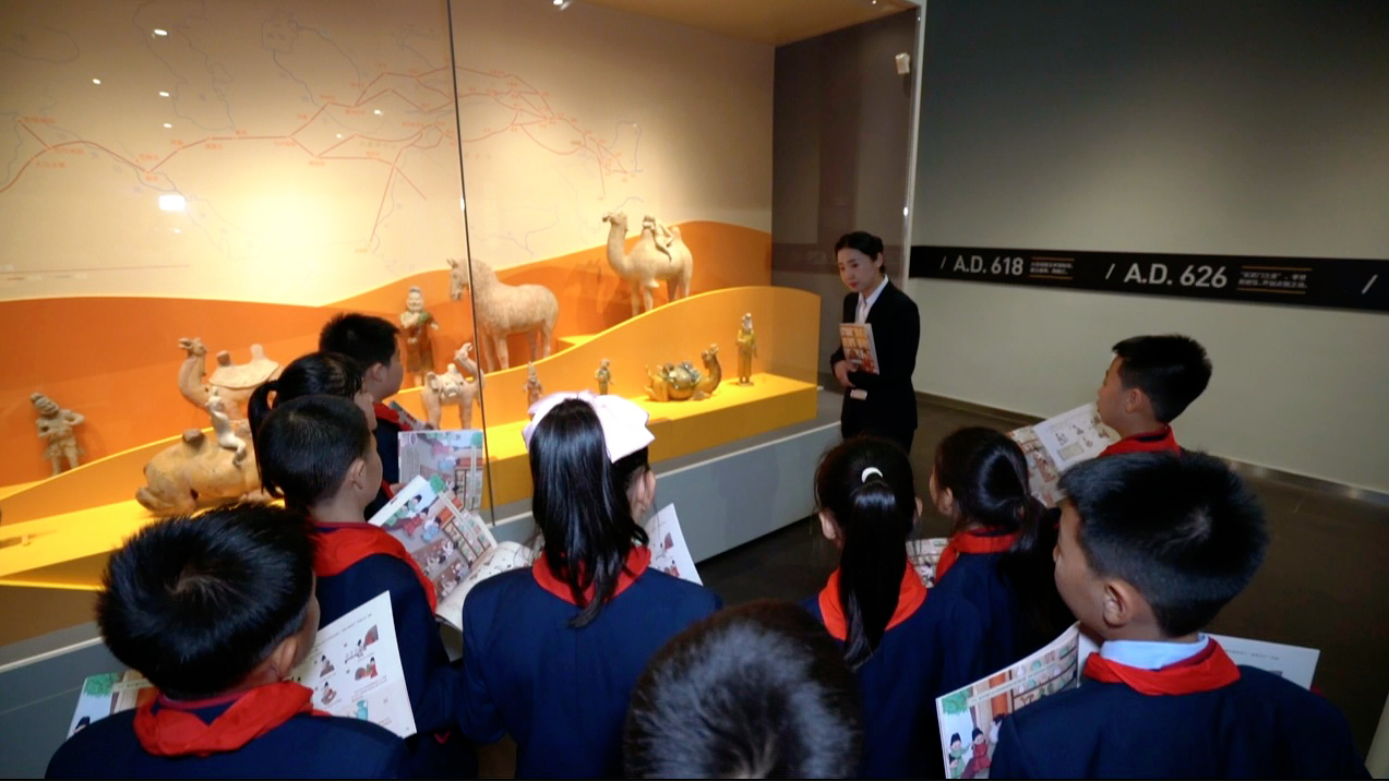 “我們不斷加強對文物深入細致的觀察和了解,以便更好保護和利用文物資源,讓觀眾更直觀看到文物的價值?!蔽靼膊┪镌航逃茝V部負責人張莉說。近年來,西安博物院創(chuàng)新展覽形式和活態(tài)傳承,延伸“教育場景”,通過常態(tài)化開展?jié)h服折紙、編輯社教讀本等,讓文物可“觸摸”,文化能感知,歷史可“對話”。