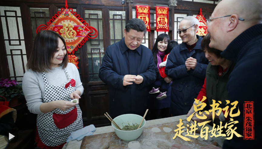 2019年春節(jié)前夕,習(xí)近平總書記走進北京市東城區(qū)草廠四條胡同。在居民朱茂錦家里,總書記與他們一家邊包水餃邊聊家常??倳浶χf:“我家里也愛包茴香餡的。多年來因工作關(guān)系我沒包過餃子了,你們看,越包越好。我們的生活也是這樣,越過越好!”