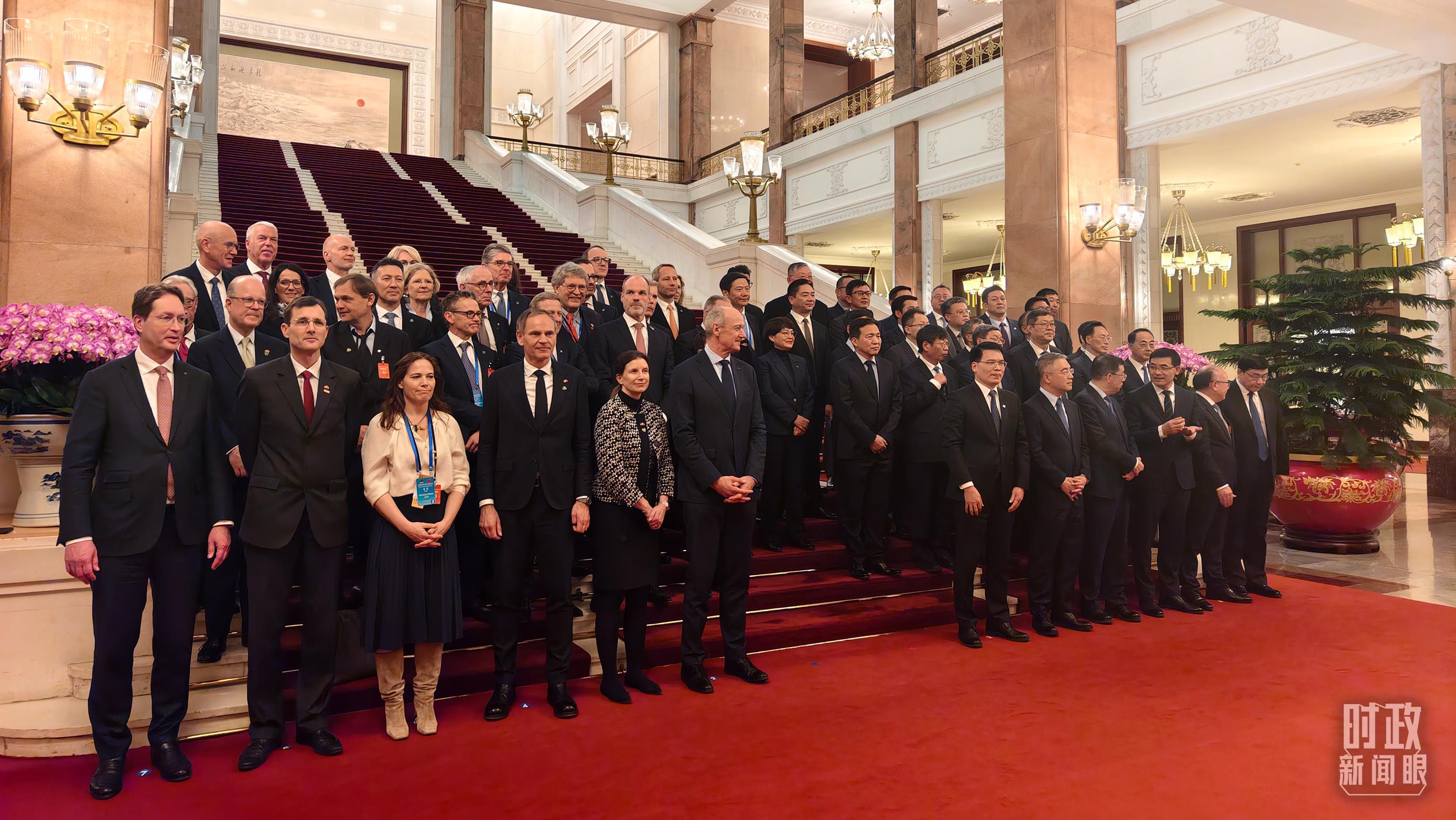 2月25日下午,出席中德經(jīng)濟(jì)顧問委員會座談會的中德企業(yè)代表在等待合影。(總臺央視記者胡瑋拍攝)