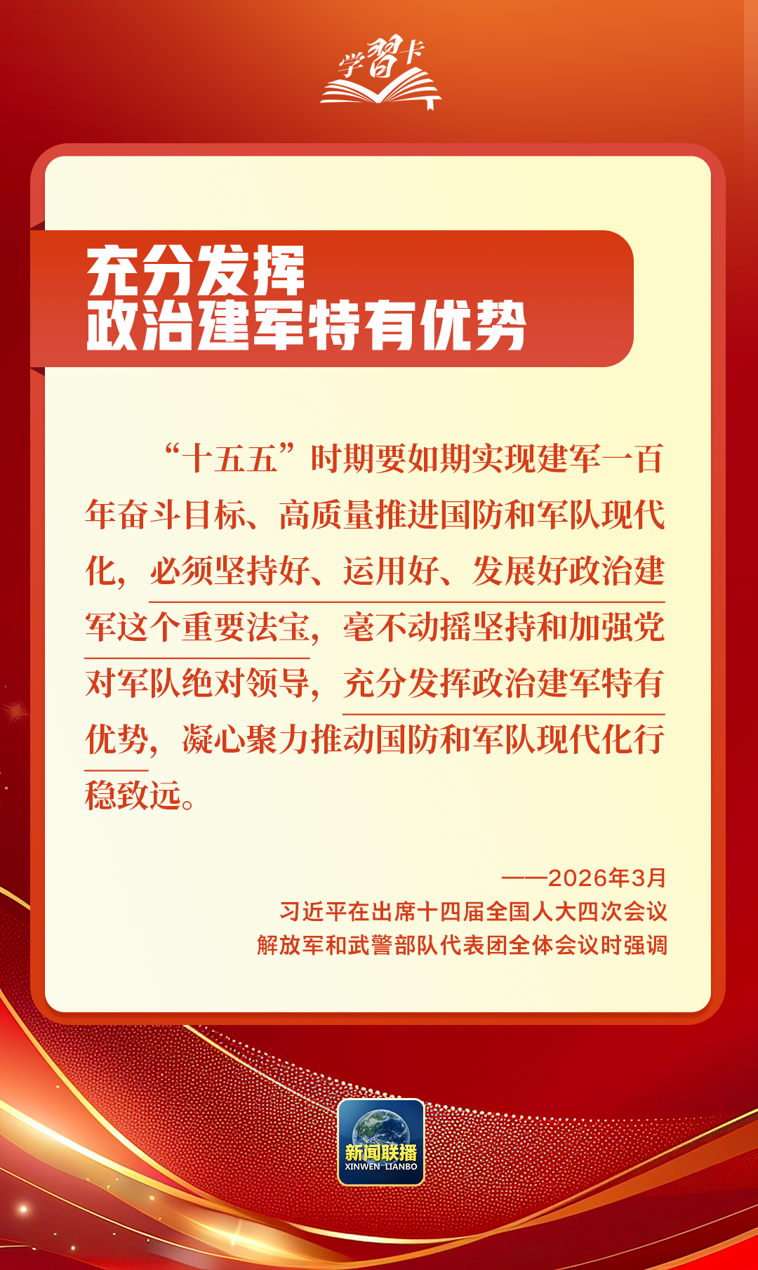 3月5日至7日,習(xí)近平總書記先后參加江蘇代表團(tuán)審議、看望全國(guó)政協(xié)委員、出席解放軍和武警部隊(duì)代表團(tuán)全體會(huì)議,圍繞經(jīng)濟(jì)大省發(fā)展、健康中國(guó)建設(shè)、政治建軍等重大議題作出深刻闡釋、提出明確要求,為“十五五”開好局、起好步提供科學(xué)指引。