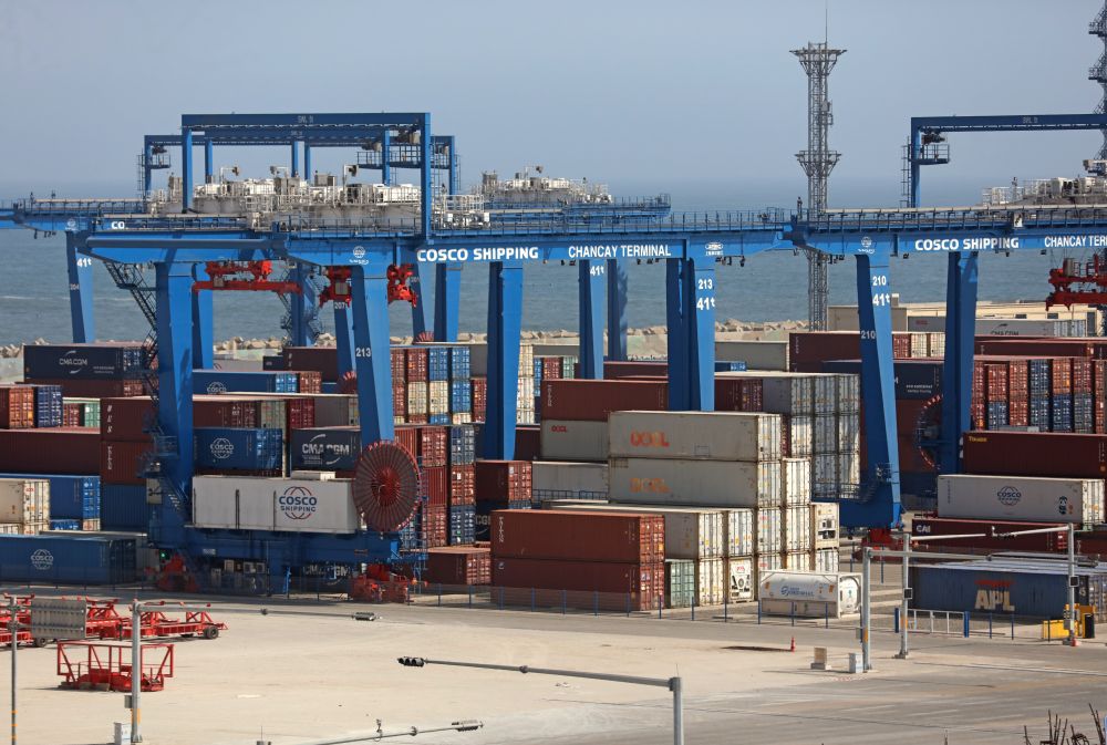 這是2025年10月7日拍攝的秘魯錢凱港碼頭擺放的集裝箱。位于秘魯首都利馬以北約80公里的錢凱港于2024年11月正式開(kāi)港,標(biāo)志著中秘共建“一帶一路”取得新的重要成果。新華社發(fā)(瑪麗安娜·巴索 攝)