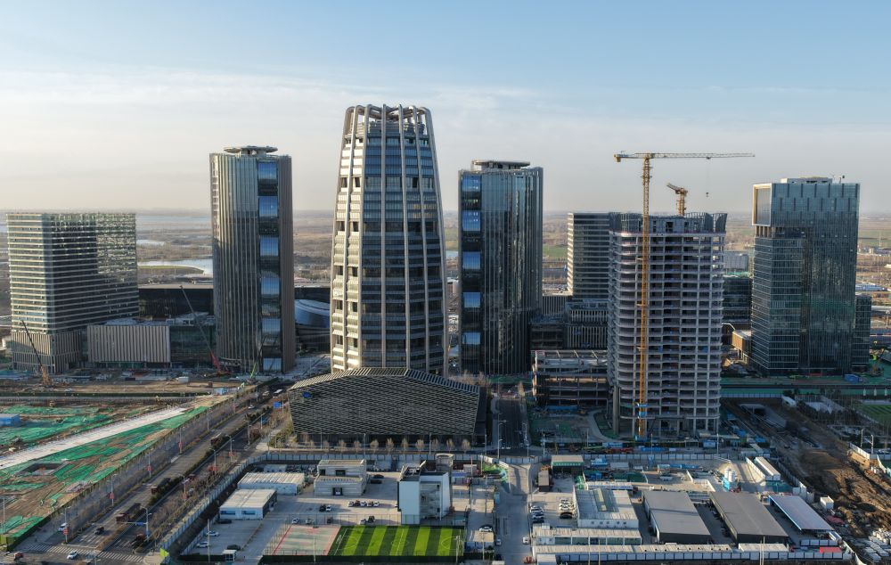 雄安商務(wù)服務(wù)中心是新區(qū)首個(gè)標(biāo)志性城市建筑群,建筑風(fēng)格以東方美學(xué)立體展現(xiàn)雄安特色風(fēng)貌,功能包括酒店、專家公寓、商業(yè)等。2022年底,該中心投入使用。通過綠色建筑技術(shù)的集成與創(chuàng)新,這里實(shí)現(xiàn)了綠建三星標(biāo)準(zhǔn)全覆蓋,項(xiàng)目預(yù)計(jì)每年可節(jié)約用電1100萬度。這是2022年3月28日拍攝的雄安商務(wù)服務(wù)中心。