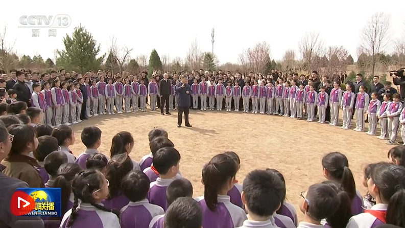 3月30日,黨和國家領(lǐng)導(dǎo)人習(xí)近平、李強(qiáng)、趙樂際、王滬寧、蔡奇、丁薛祥、李希等來到北京市昌平區(qū)百善鎮(zhèn)參加首都義務(wù)植樹活動(dòng)。這是習(xí)近平同在場(chǎng)的干部群眾、少先隊(duì)員親切交談。