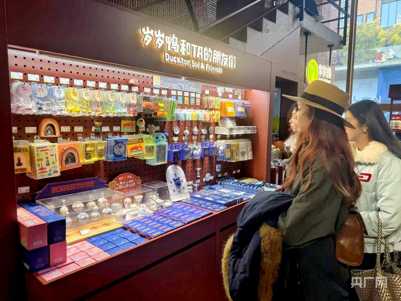 游客正在選購“歲歲鴨”相關(guān)文創(chuàng)產(chǎn)品(央廣網(wǎng)記者 胡斐 攝)