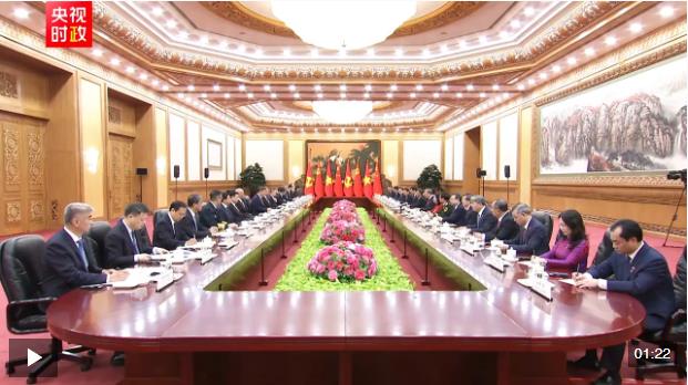 習近平指出,你當選越南國家主席后第一時間到訪中國,體現(xiàn)了你對發(fā)展中越關系的高度重視。無論國際形勢如何變化,中方始終將越南作為周邊外交優(yōu)先方向,愿同越方秉持初心、賡續(xù)友誼,團結協(xié)作、相互支持,高質量推進全面戰(zhàn)略合作,加快構建更高水平具有戰(zhàn)略意義的中越命運共同體。