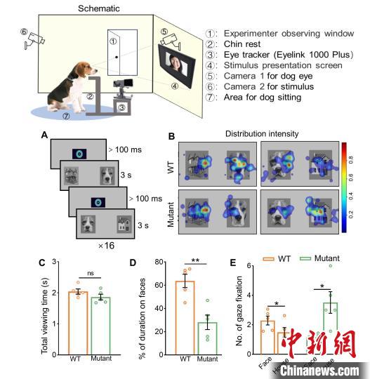 論文第一作者、中國(guó)科學(xué)院遺傳發(fā)育所博士生袁思琦說(shuō),家犬在長(zhǎng)期家養(yǎng)馴化過(guò)程中獲得卓越的面孔認(rèn)知能力(會(huì)看臉色),是研究面孔加工的理想動(dòng)物模型之一。在團(tuán)隊(duì)前期成功構(gòu)建孤獨(dú)癥家犬模型的基礎(chǔ)上,本次研究進(jìn)一步發(fā)現(xiàn)攜帶Shank3基因突變的比格犬表現(xiàn)出類似孤獨(dú)癥患者的面孔加工異常,這為研究面孔加工的神經(jīng)機(jī)制和干預(yù)方案提供了寶貴的動(dòng)物模型。
