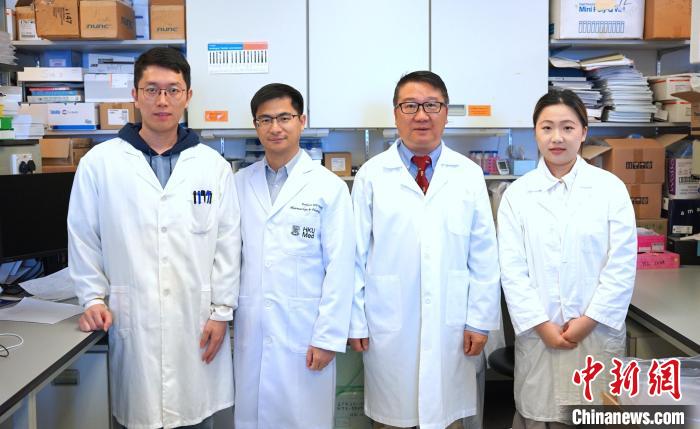 4月10日,香港大學(xué)醫(yī)學(xué)院宣布,其研究團(tuán)隊(duì)成功開(kāi)發(fā)突破性癌癥免疫新療法,名為光敏混合型γδ-T細(xì)胞外泌體,能針對(duì)并摧毀癌細(xì)胞,為癌癥治療帶來(lái)突破。圖為香港大學(xué)醫(yī)學(xué)院臨床醫(yī)學(xué)學(xué)院兒童及青少年科學(xué)系教授涂文偉(右二),以及香港大學(xué)醫(yī)學(xué)院藥理及藥劑學(xué)系、李達(dá)三博士研究中心副教授汪衛(wèi)平(左二)領(lǐng)導(dǎo)的研究團(tuán)隊(duì)。 (香港大學(xué)供圖)