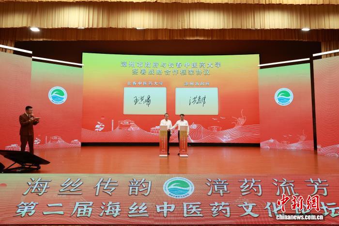 圖為當(dāng)天漳州市政府與長春中醫(yī)藥大學(xué)簽署戰(zhàn)略合作框架協(xié)議。郭濤 攝