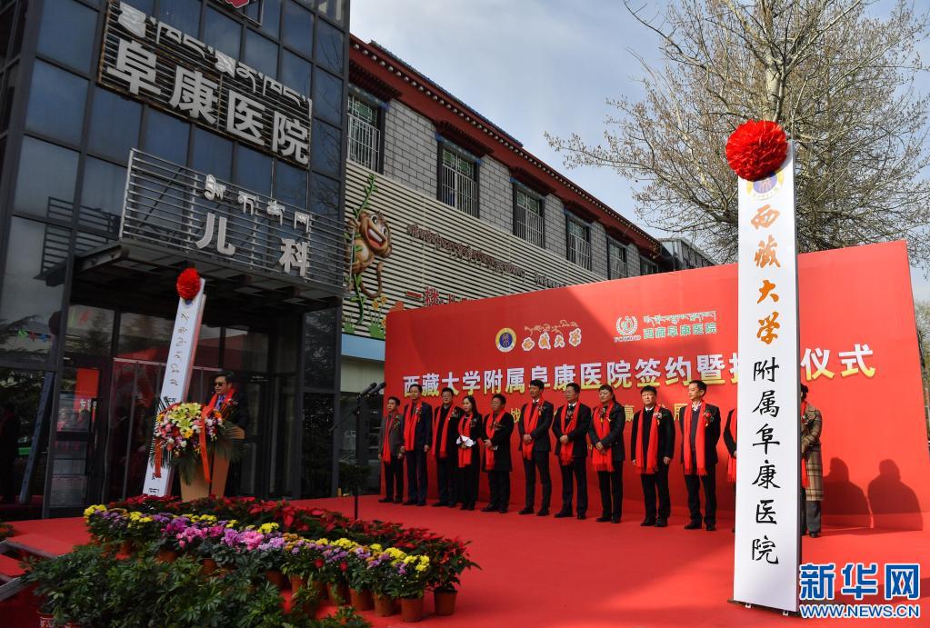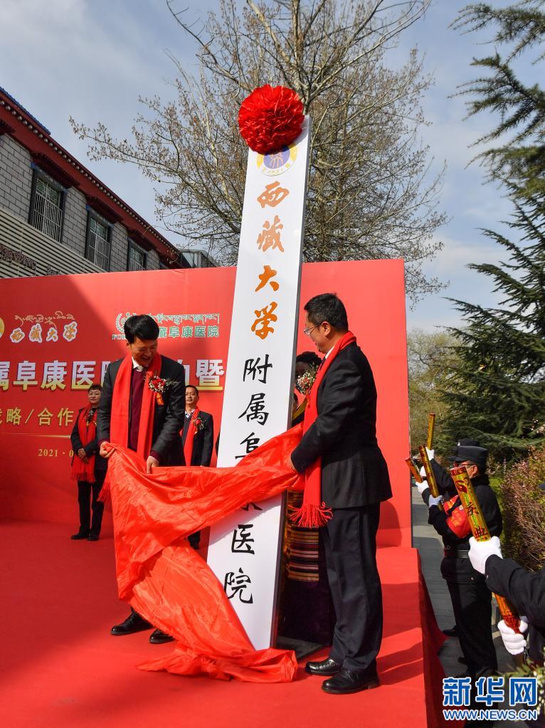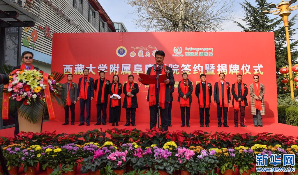 西藏大學(xué)附屬阜康醫(yī)院簽約暨揭牌儀式現(xiàn)場(chǎng)(4月7日攝)。