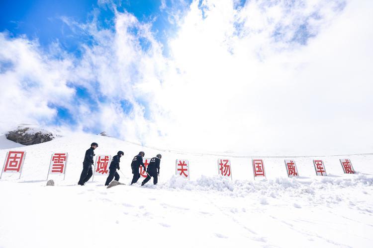 圖為西藏亞東出入境邊防檢查站民警在海拔4300余米的乃堆拉山口巡邏