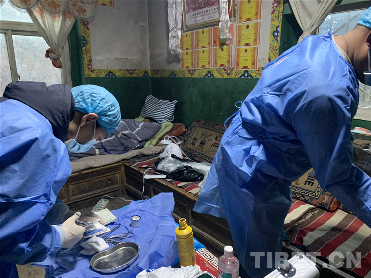 臨近藏歷新年,家屬提出要帶扎西尼瑪回家過年。經(jīng)過北京專家遠(yuǎn)程會(huì)診,洛隆縣人民醫(yī)院的青年專家們決心滿足扎西尼瑪?shù)脑竿?,帶上醫(yī)療設(shè)備住進(jìn)了扎西尼瑪?shù)募依铮?/p>