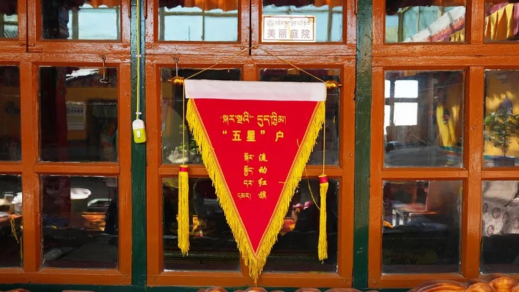 中國(guó)西藏網(wǎng)訊 在西藏自治區(qū)日喀則市桑珠孜區(qū)聯(lián)鄉(xiāng)楚西村的米普家中,一面“五星”戶(hù)的流動(dòng)紅旗格外亮眼。