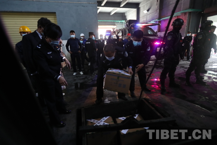 活動(dòng)啟動(dòng)后,貼有封條的50箱毒品被公安廳反恐特偵總隊(duì)公安民警和禁毒總隊(duì)民警裝運(yùn)至曲水縣危廢處置中心采用無公害化技術(shù)焚燒銷毀。