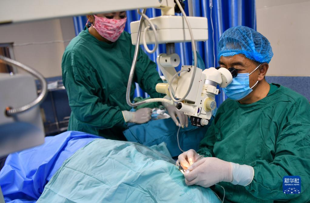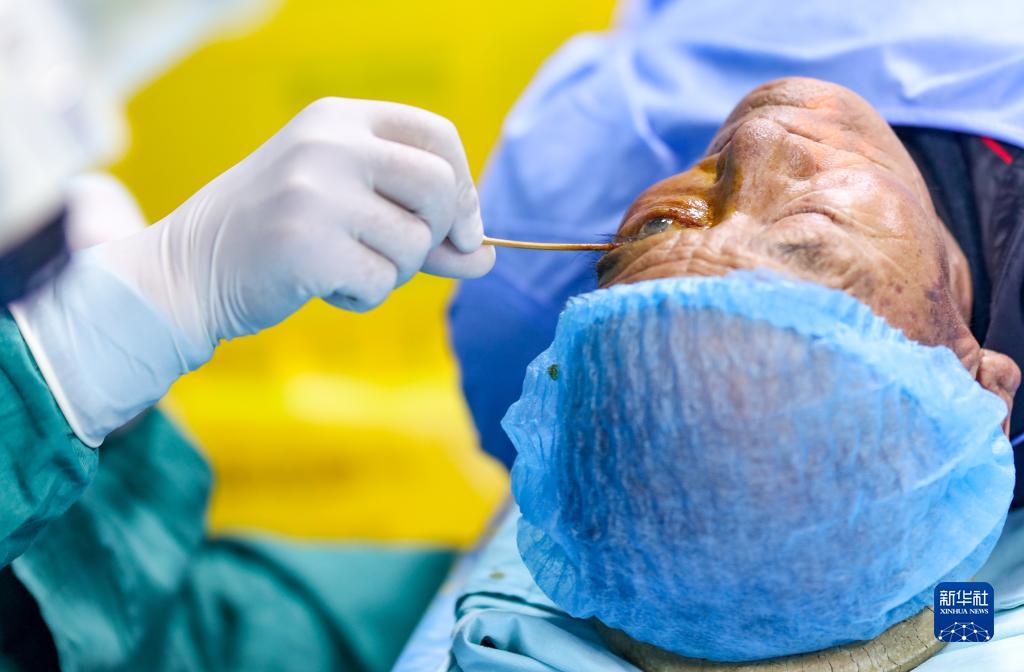 6月8日,光明眼科康復(fù)診療院的醫(yī)生在為一位農(nóng)牧民患者做白內(nèi)障手術(shù)。新華社記者 姜帆 攝