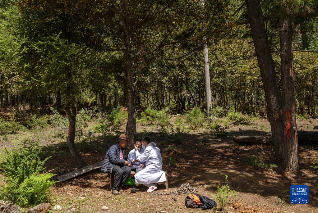 6月12日,王彤旭在吞不絨村為珠杰診治。新華社記者 費(fèi)茂華 攝
