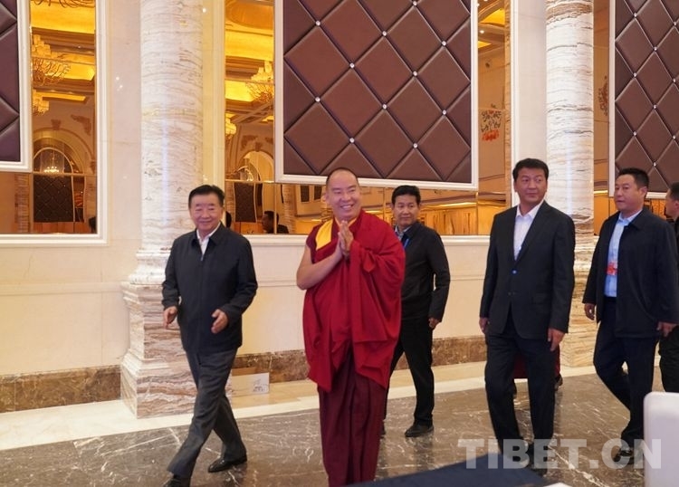 圖為班禪和出席活動(dòng)的領(lǐng)導(dǎo)步入會(huì)場(chǎng) 攝影:王淑