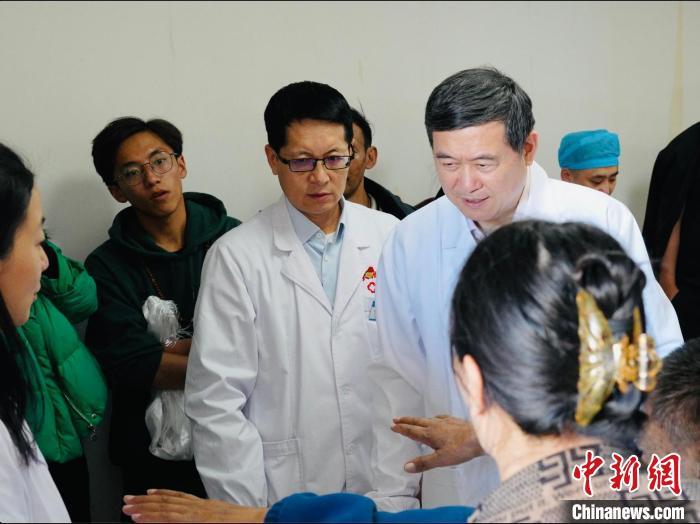 圖為中國工程院院士、清華大學附屬北京清華長庚醫(yī)院院長董家鴻(右)在青海診療。(資料圖)黃錦匯 供圖