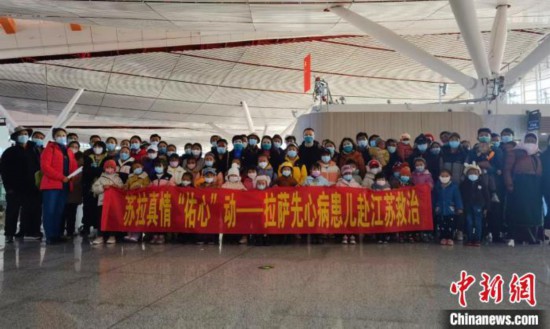 圖為經(jīng)過本次篩查,拉薩首批先心病患兒出發(fā)前往江蘇治療 江蘇援藏前方指揮部供圖