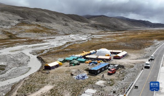 這是卓奧友峰登山大本營,科考隊(duì)員在這里開展部分急進(jìn)高原人群健康研究(10月1日攝,無人機(jī)照片)。新華社記者 晉美多吉 攝