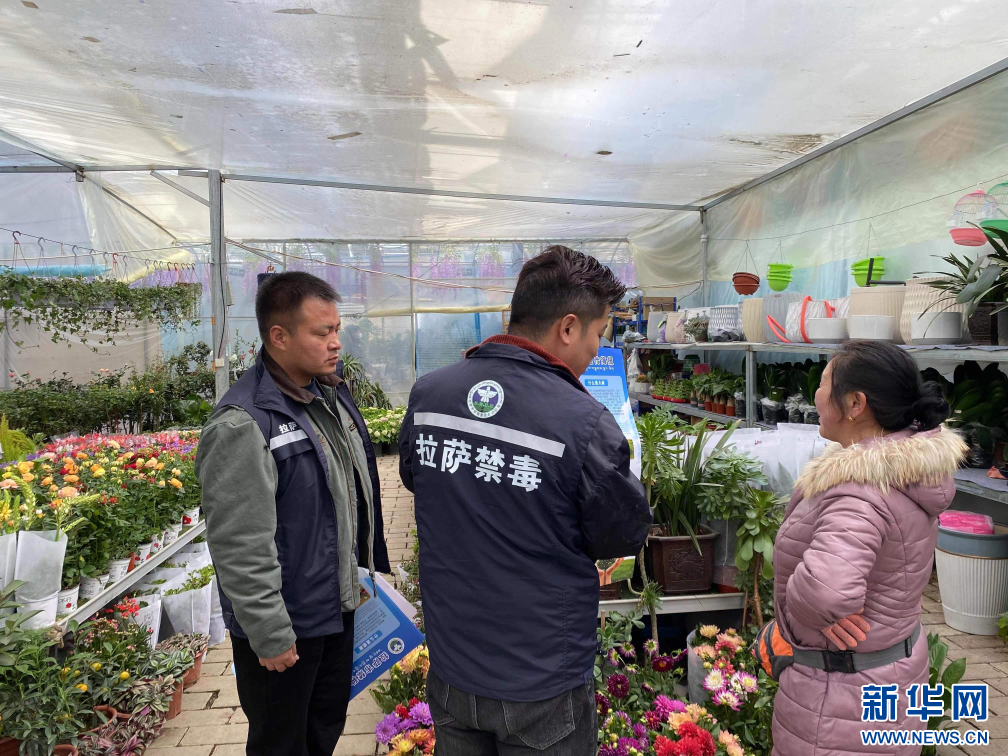 拉薩禁毒支隊(duì)民警對(duì)種子市場(chǎng)進(jìn)行突擊檢查。(受訪者提供)