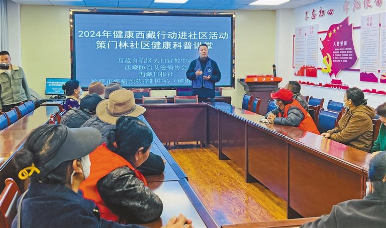 近日,西藏自治區(qū)人口宣教中心、西藏艾滋病協(xié)會(huì)、西藏日?qǐng)?bào)社、拉薩市疾病預(yù)防控制中心共同舉辦2024年健康西藏行動(dòng)進(jìn)社區(qū)活動(dòng)。相關(guān)工作人員為城關(guān)區(qū)策門林社區(qū)居民群眾講解了關(guān)于慢病、艾滋病的防治等內(nèi)容。