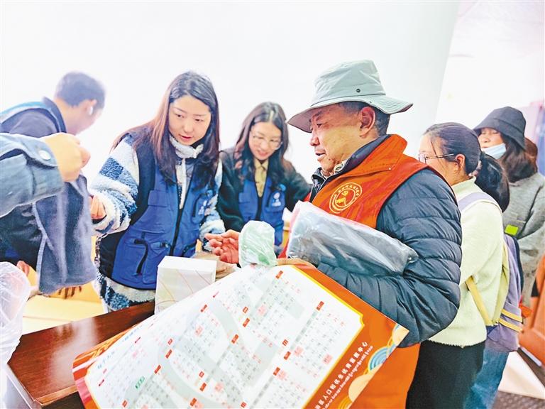 圖為工作人員為居民群眾發(fā)放宣傳冊(cè)。