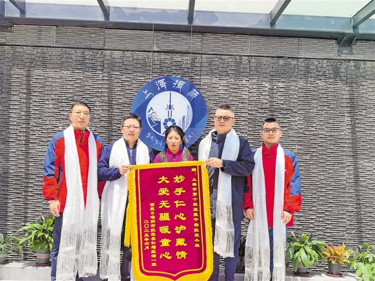 康復后的患者家屬給上海市援藏醫(yī)生送來錦旗表達感謝。