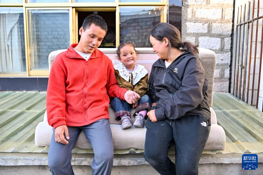 2025年10月10日,達瓦次仁在陪大女兒丹增曲音玩耍。