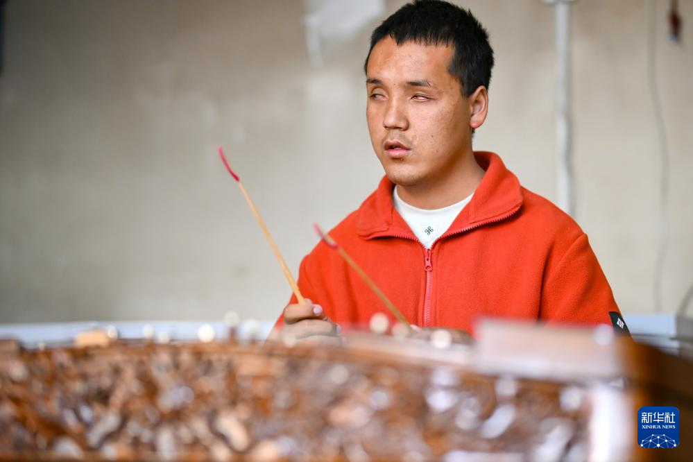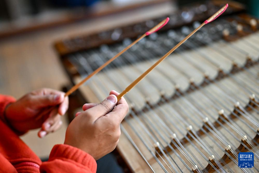 2025年10月11日,達瓦次仁在練習(xí)演奏揚琴。