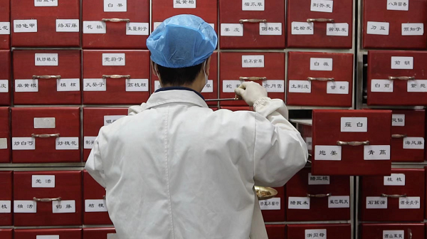 小鹿中醫(yī)調劑中心的藥師正在為患者抓藥