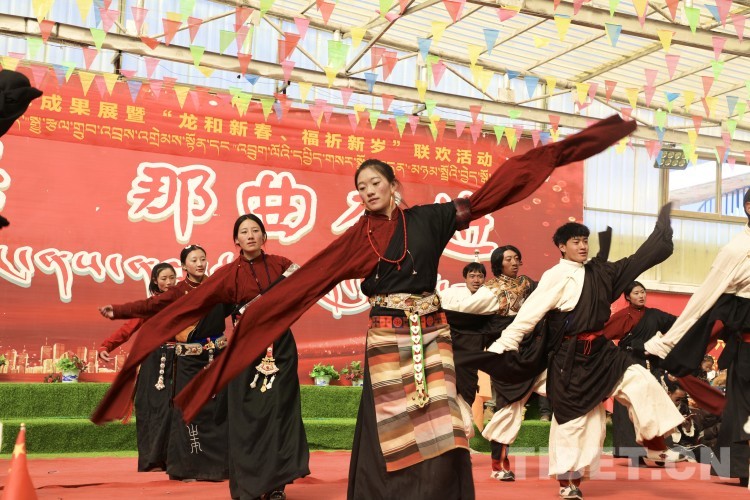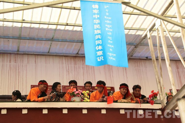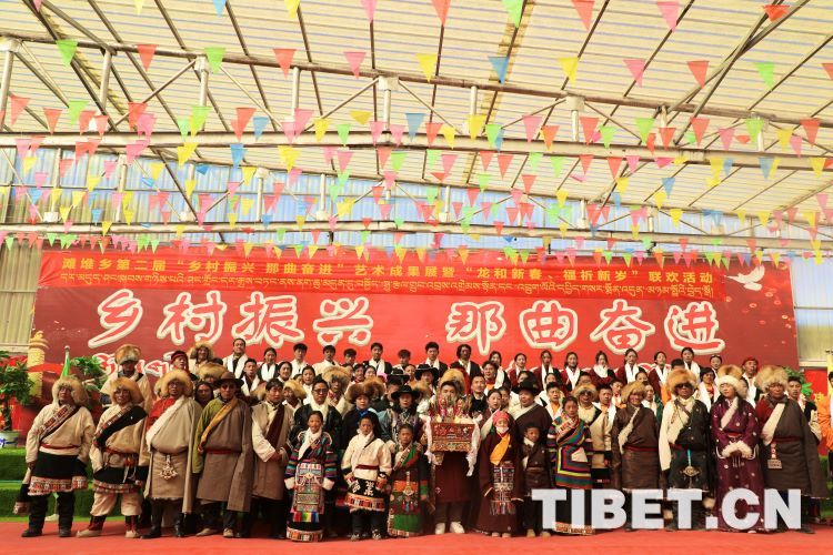 中國西藏網(wǎng)訊 2月10日,中國西藏信息中心“新春走基層”青藏線采訪組一行,來到西藏自治區(qū)那曲市安多縣灘堆鄉(xiāng),適逢當(dāng)?shù)卦谂e辦灘堆鄉(xiāng)第二屆“鄉(xiāng)村振興 那曲奮進(jìn)”藝術(shù)成果展暨“龍和新春、福祈新歲”聯(lián)歡活動。采訪組一行來到鄉(xiāng)政府對面的灘堆鄉(xiāng)文化站,記者在現(xiàn)場看到許多穿著具有當(dāng)?shù)孛褡逄厣椀娜嗽诖司奂?。在好奇心的?qū)使下,經(jīng)詢問當(dāng)?shù)馗刹坎胖?,為喜?024春節(jié)和藏歷新年,感激黨和國家的關(guān)心關(guān)懷,歌頌如今來之不易的幸福生活,鄉(xiāng)村文藝隊(duì)特此精心準(zhǔn)備了文藝節(jié)目,以嶄新的面貌和昂揚(yáng)的精神展現(xiàn)新時(shí)代牧民群眾的精神風(fēng)貌和幸福生活。