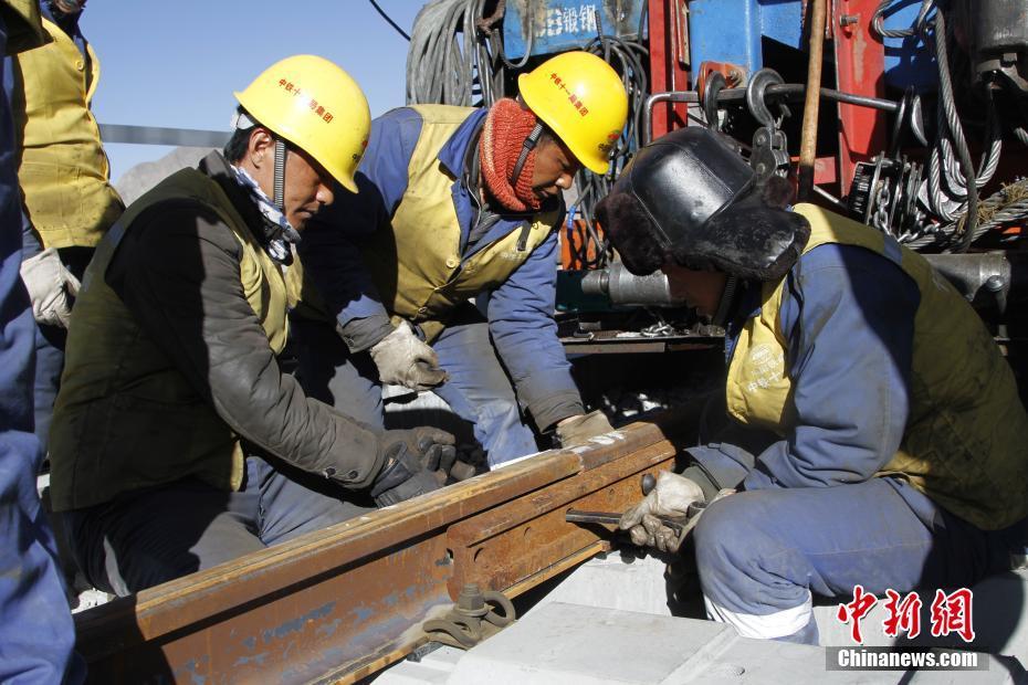 11月26日,中鐵十一局三公司拉林鐵路項(xiàng)目部鋪架二隊(duì)工人鋪設(shè)拉林鐵路首跨貢嘎雅魯藏布江特大橋鐵軌。拉林鐵路共計(jì)上跨雅魯藏布江16處,貢嘎雅魯藏布江特大橋全長(zhǎng)5727米,為拉林鐵路全線最長(zhǎng)橋梁。拉林鐵路起于西藏自治區(qū)首府拉薩,終點(diǎn)為林芝市,拉林鐵路新建正線鋪軌403.14千米,運(yùn)營(yíng)長(zhǎng)度435.48千米。中新社記者 趙朗 攝