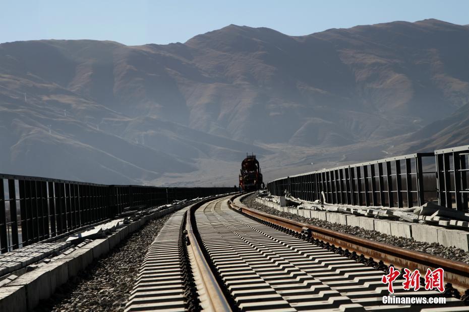 11月26日,中鐵十一局三公司拉林鐵路項(xiàng)目部鋪架二隊(duì)工人鋪設(shè)拉林鐵路首跨貢嘎雅魯藏布江特大橋鐵軌。拉林鐵路共計(jì)上跨雅魯藏布江16處,貢嘎雅魯藏布江特大橋全長(zhǎng)5727米,為拉林鐵路全線最長(zhǎng)橋梁。拉林鐵路起于西藏自治區(qū)首府拉薩,終點(diǎn)為林芝市,拉林鐵路新建正線鋪軌403.14千米,運(yùn)營(yíng)長(zhǎng)度435.48千米。圖為部分鐵路已經(jīng)鋪設(shè)完成。中新社記者 趙朗 攝
