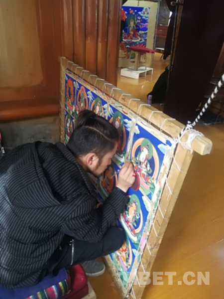 近年來(lái),郎卡杰畫(huà)派唐卡將文化傳承保護(hù)和群眾就業(yè)增收有效地結(jié)合起來(lái),逐漸走出了一條“政府扶持、公司培養(yǎng)、定向就業(yè)”的發(fā)展道路。