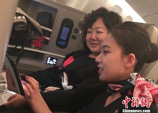 圖為東航空姐指導(dǎo)小乘客正確使用平板電腦(Pad)。