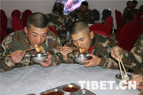 據(jù)悉,該總隊(duì)各基層單位還組織了撲克、套圈、乒乓球、臺(tái)球等有獎(jiǎng)比賽,進(jìn)一步密切了官兵之間的關(guān)系,使官兵在享受游戲歡樂(lè)的同時(shí)增長(zhǎng)了知識(shí),特別是讓新戰(zhàn)士在部隊(duì)度過(guò)的第一個(gè)春節(jié)不“孤單”。警通勤務(wù)中隊(duì)新戰(zhàn)士薛小龍說(shuō):“我雖是第一次離家過(guò)年,心里難免會(huì)有些想家的念頭,但在這么溫馨的大家庭里跟戰(zhàn)友們一起過(guò)年,這樣的氛圍更有一番年味,我一定會(huì)安心服役,圓滿完成好上級(jí)賦予的各項(xiàng)任務(wù),做一個(gè)讓領(lǐng)導(dǎo)放心,讓家人安心的好戰(zhàn)士。”(中國(guó)西藏網(wǎng) 圖、文/夏明勇、潘興耀)