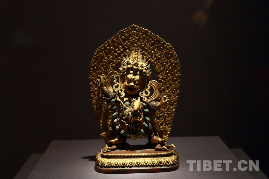 圖為銅鎏金忿怒蓮師像。寧瑪派形成于11世紀(jì),“寧瑪”在藏語中是“古舊”之意,“寧瑪派”即“古派”。寧瑪派認(rèn)為其教理、儀軌傳承自8世紀(jì)時(shí)的蓮花生大師。寧瑪派僧人戴紅色僧帽,因而該派又被俗稱“紅教”。