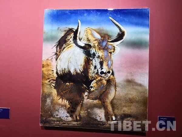 18日當(dāng)天,來自江西景德鎮(zhèn)的陶瓷藝術(shù)家李泉舉辦的“瓷@慈”當(dāng)代藝術(shù)展也在牦牛博物館開幕。展覽以45幅高溫顏色釉作品和一組500多個小件構(gòu)成的裝置藝術(shù)表現(xiàn)西藏的山川和人文。“色釉西藏,慈愛高原,此次展覽完成了我很久以來的心愿,表達了自己對西藏高原和藏族人民的理解與認(rèn)識”,李泉說。