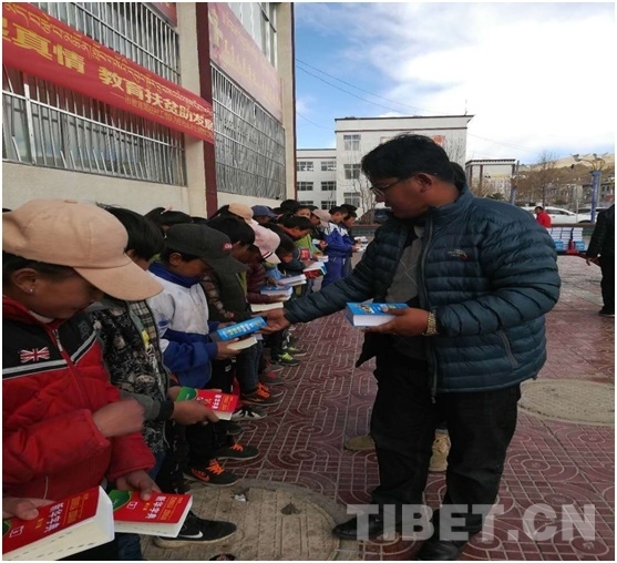 除了開(kāi)辦寒假補(bǔ)習(xí)班,駐村工作隊(duì)還為各駐村點(diǎn)的學(xué)生爭(zhēng)取到了價(jià)值近2萬(wàn)元的《現(xiàn)代漢語(yǔ)詞典》、《新華字典》等學(xué)習(xí)用品,并分赴昂仁縣中學(xué)、亞木鄉(xiāng)中心小學(xué)等,親手送到孩子們手上。