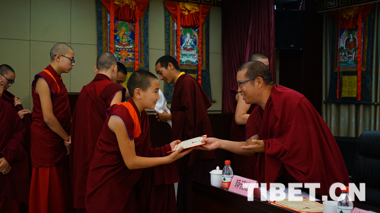中國(guó)藏語(yǔ)系高級(jí)佛學(xué)院相關(guān)領(lǐng)導(dǎo)表示,通過(guò)在高級(jí)佛學(xué)院的課堂學(xué)習(xí)和參觀學(xué)習(xí),各位學(xué)員佛學(xué)理論、藏漢語(yǔ)文水平等顯著提高,視野進(jìn)一步開(kāi)闊。7名學(xué)員在西黃寺受了沙彌戒。大家雖然年齡尚小,但學(xué)習(xí)勤奮刻苦,禮貌懂事,充滿朝氣。對(duì)于已結(jié)業(yè)的10名學(xué)員,希望他們繼續(xù)精進(jìn)學(xué)修,提高佛學(xué)造詣。作為僧人,肩負(fù)著傳承佛法的責(zé)任。藏傳佛教經(jīng)典浩如煙海,要按照次第繼續(xù)深造,不斷提高。遵從佛陀“以戒為師”的教言。秉承佛教慈悲利他的精神,心系蒼生、弘揚(yáng)正法。