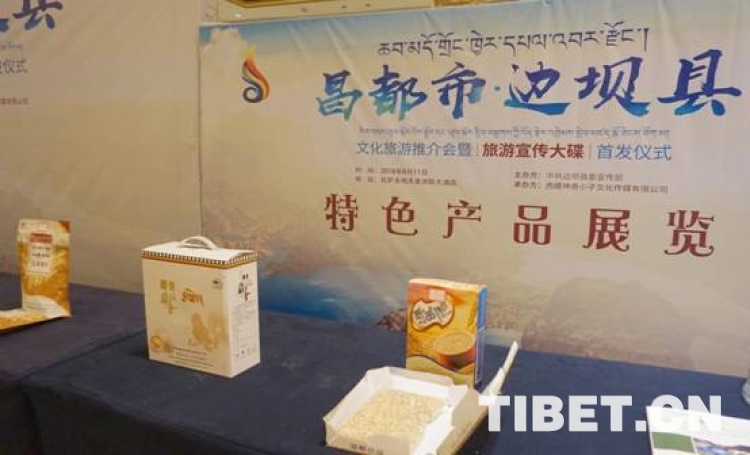 昌都邊壩旅游文化宣傳電視音樂專輯《醉美三色湖?吉祥邊壩》首發(fā)儀式暨文化旅游推介會現(xiàn)場展示的當?shù)靥厣a(chǎn)品。攝影:扎西