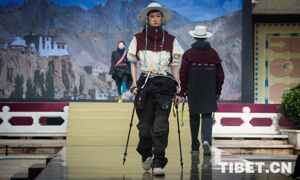 圖為身著經(jīng)過(guò)設(shè)計(jì)改版西藏民族服飾的模特。