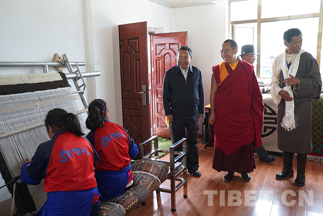 圖為十一世班禪參觀學(xué)校殘疾人職業(yè)教育中心。攝影:王淑
