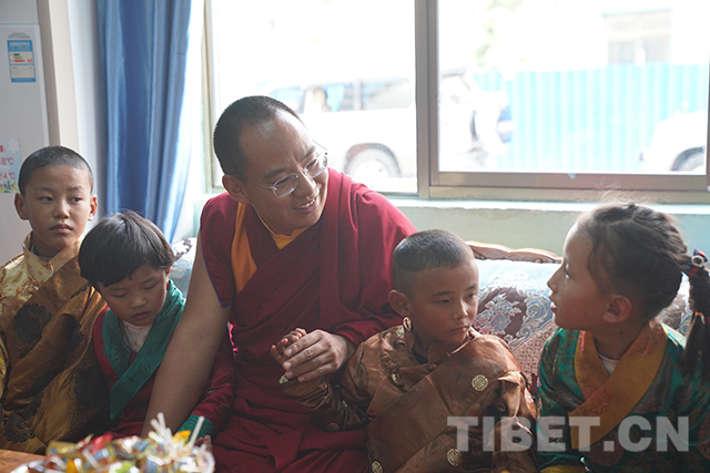 看望完殘障學(xué)生后,十一世班禪又來到山南市兒童福利院,看望在這里生活的山南市和那曲市部分孤兒。本著“一心想著孩子,一切為了孩子”的理念,福利院為460多名孩子提供了室內(nèi)外活動室、電教室、圖書室、美術(shù)室、成長教育園地、舞蹈室、藏文書法室等,孩子們可以在這里學(xué)習(xí)文化、增長見識。