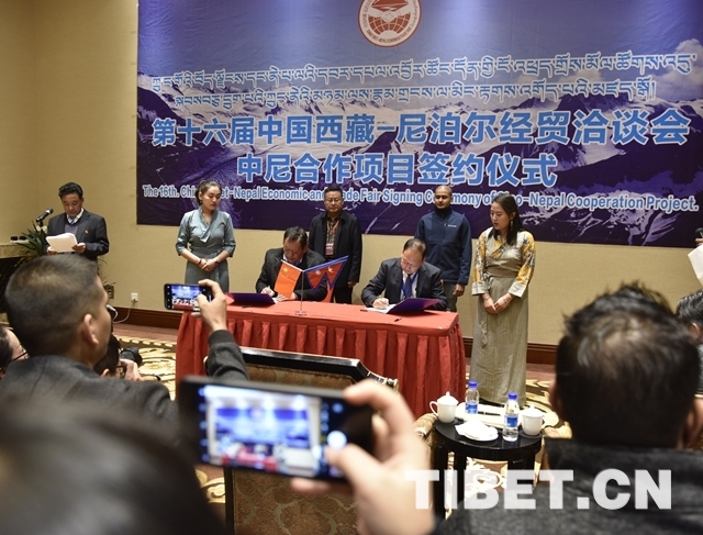 圖為第十六屆中國(guó)西藏—尼泊爾經(jīng)貿(mào)洽談會(huì)中尼合作項(xiàng)目簽約儀式。攝影:王媛媛