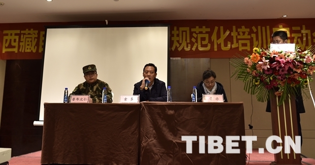圖為12月16日召開(kāi)的包蟲(chóng)病篩查規(guī)范化培訓(xùn)會(huì)上,西藏疾控中心寄生蟲(chóng)病防治所所長(zhǎng)貢桑曲珍介紹西藏包蟲(chóng)病綜合防治工作開(kāi)展情況。