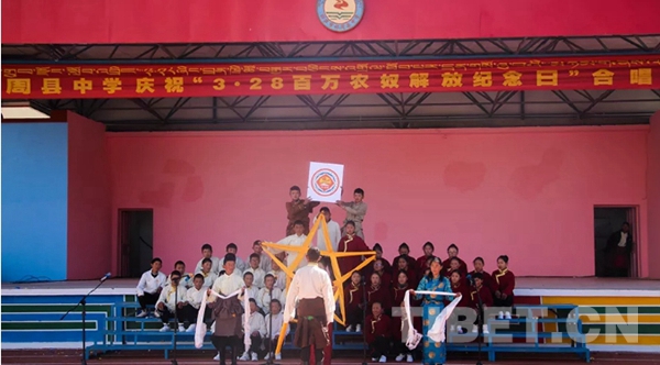 圖為拉薩市林周縣中學開展“3.28百萬農(nóng)奴解放紀念日”合唱比賽。