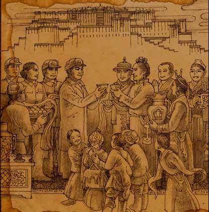 今天是春節(jié),恰好又是藏歷新年,是全家團(tuán)圓的日子。但在西藏工作的同志,卻享受不到這種歡樂(lè)。大家比平時(shí)還要忙,我這個(gè)西藏軍區(qū)政治部群眾工作部的部長(zhǎng),比別人就更忙。從早上起床,就安排軍區(qū)首長(zhǎng)和各部的領(lǐng)導(dǎo)同志,同西藏地方政府的官員,進(jìn)行拜年活動(dòng),互相祝賀“洛薩,扎西德勒”(新年,吉祥如意)。各處都顯得異常熱烈和親切。