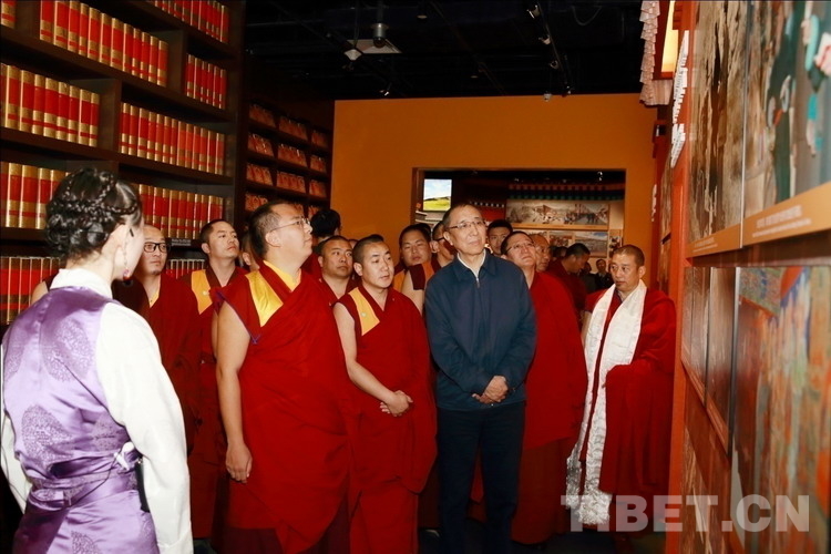 圖為十一世班禪參觀“攝影家眼中的西藏”展區(qū)。攝影:陳衛(wèi)國